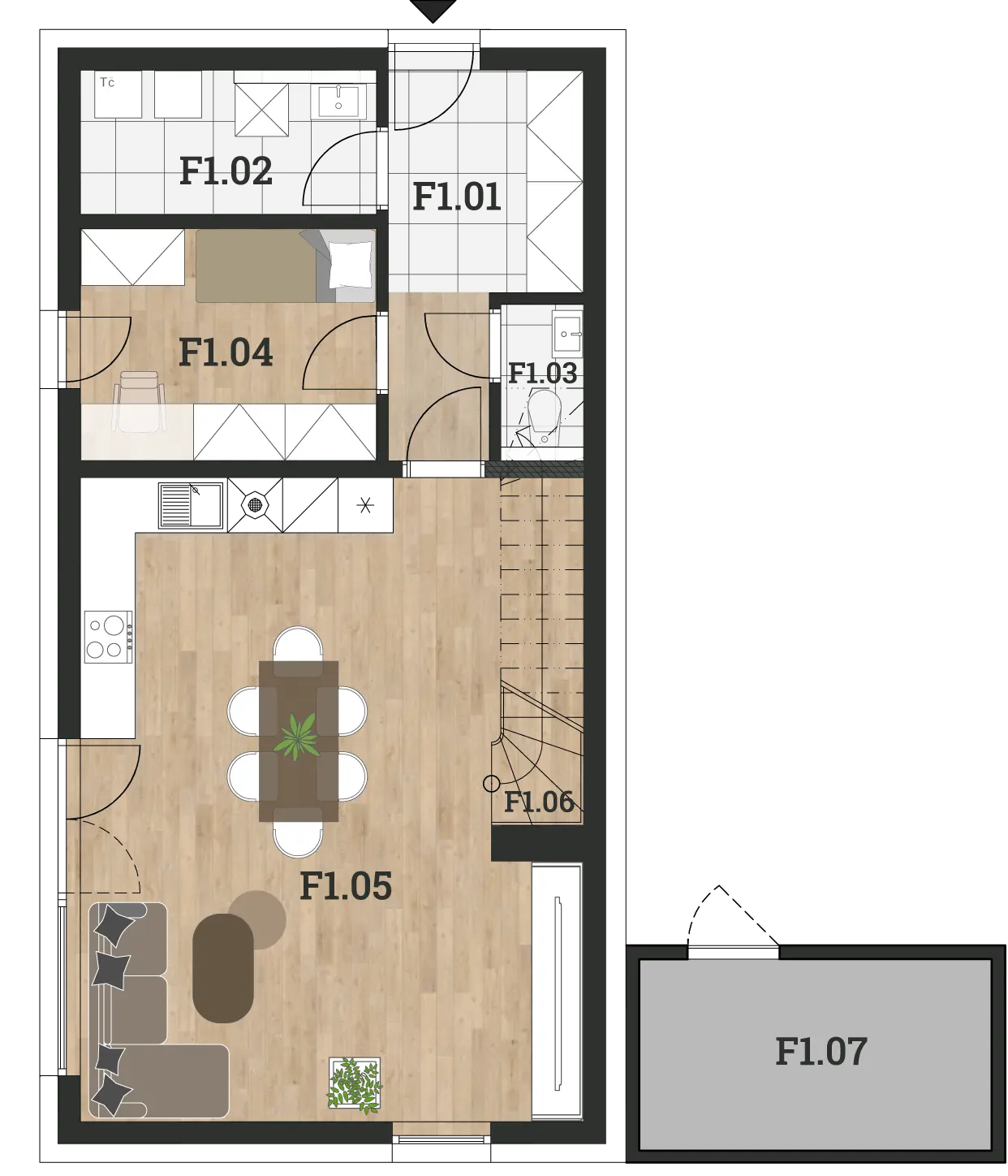 F1.01 | Vstup, zádveří a šatna | 7,8 m2 |
